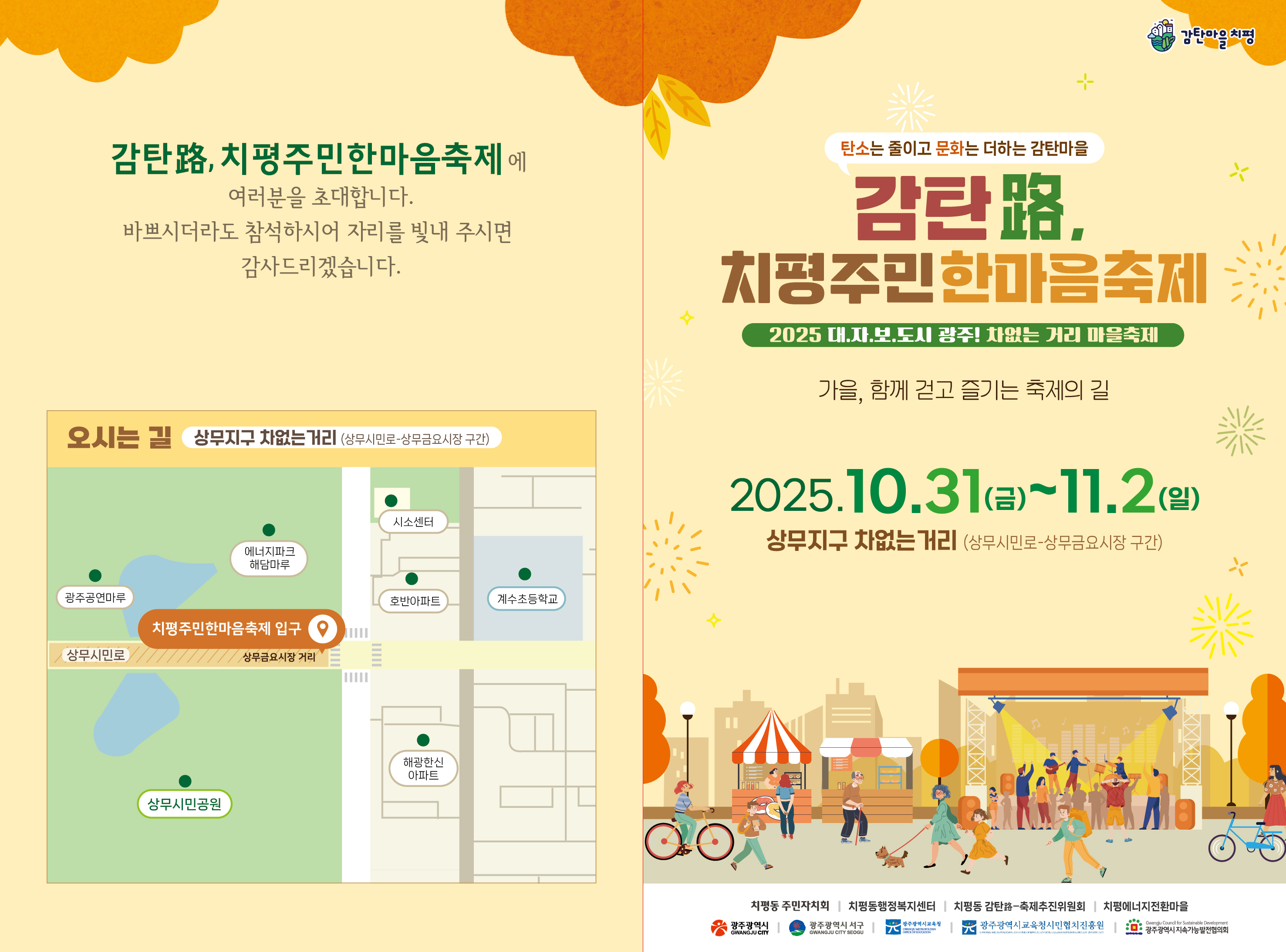 치평동 주관 "치평주민한마음축제"가 오는 10월 31일(금) ~ 11월 2일(일) 3일간 진행됩니다.